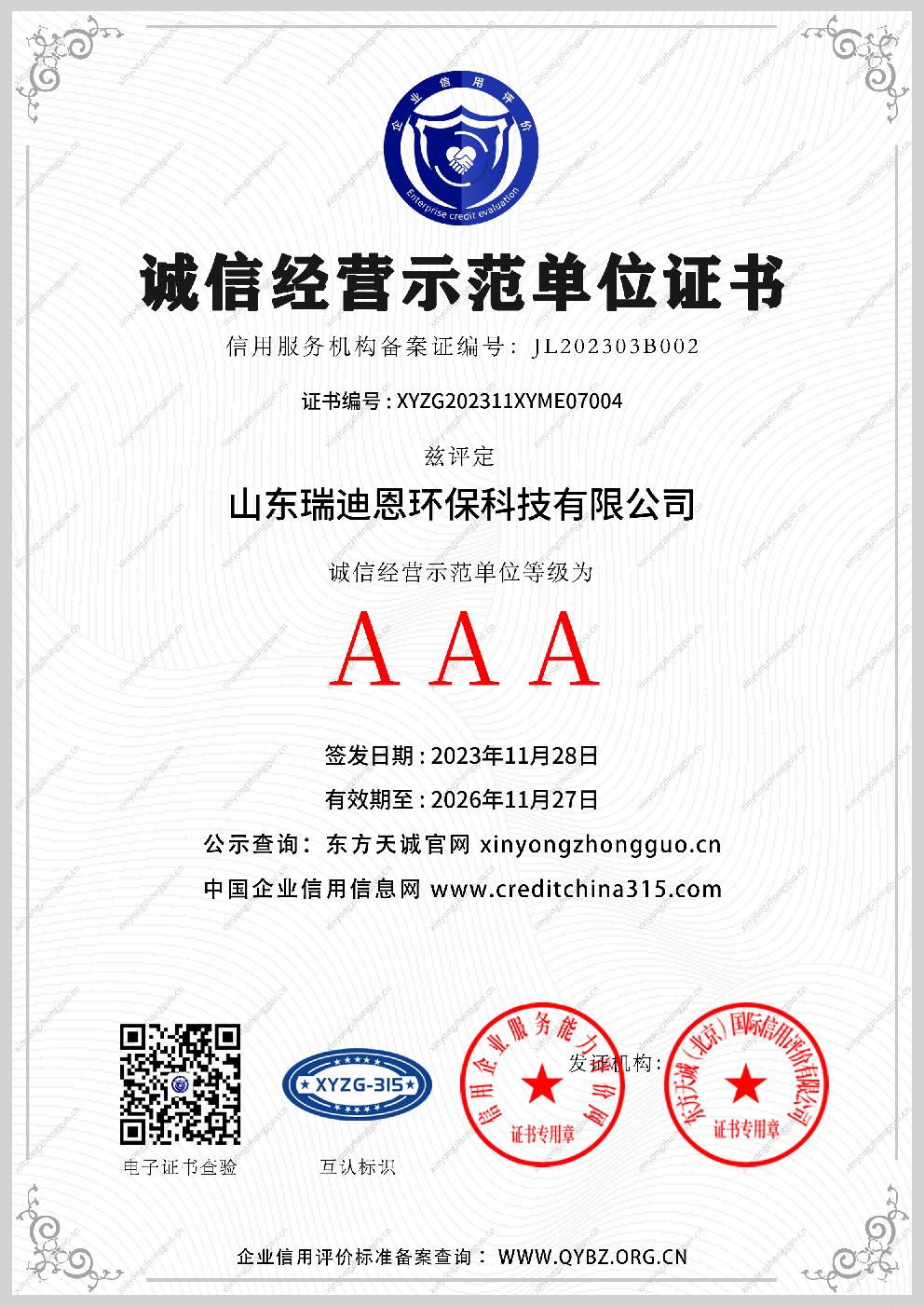 誠(chéng)信經(jīng)營(yíng)示范單位證書